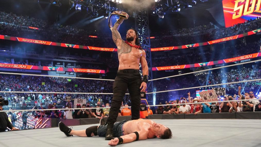 ثم، في سمرسلام 2021، عاد أسطورة WWE، جون سينا، متحديًا رينز قائلاً: “إما أن تهزمني، أو أزيلك من التاريخ”. لكن رينز لم يترك مجالًا للشك، حيث حطم سينا في مباراة ملحمية، ليعلن بكل وضوح: “WWE الآن ملكي!.